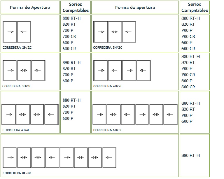 Estos sistemas presentan la ventaja que su apertura no ocupa espacio, si bien sólo es posible abrir un 50% del hueco.